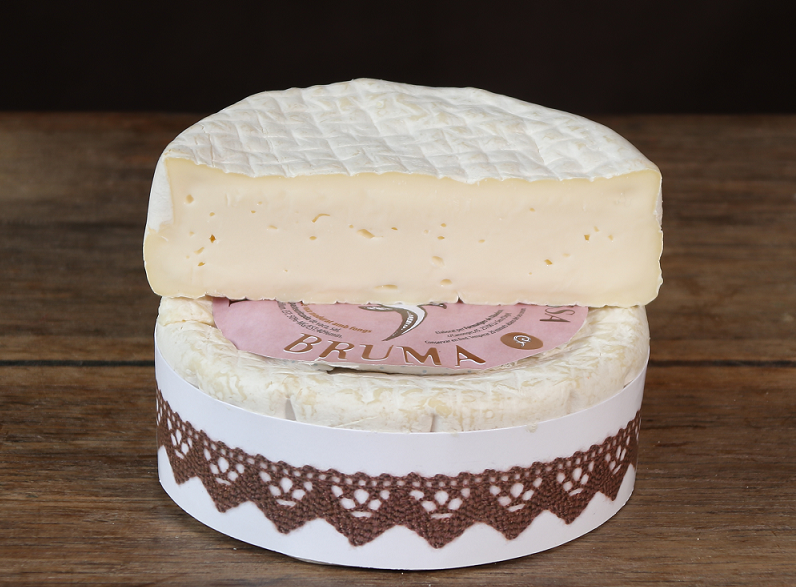 Hi surt: "BRUMA": Formatge tipus "Torta" molt cremós i suau de llet pasteuritzada ecològica de vaca de raça Bruna. Pell florida blanca. |
