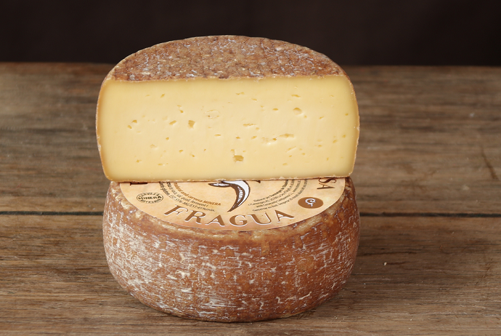 Hi surt: "FRAGUA": Formatge de llet crua ecològica de vaca de raça Bruna, madurat durant 2 mesos mínim, de crosta rentada amb cervesa artesana Minera(Conté gluten). |